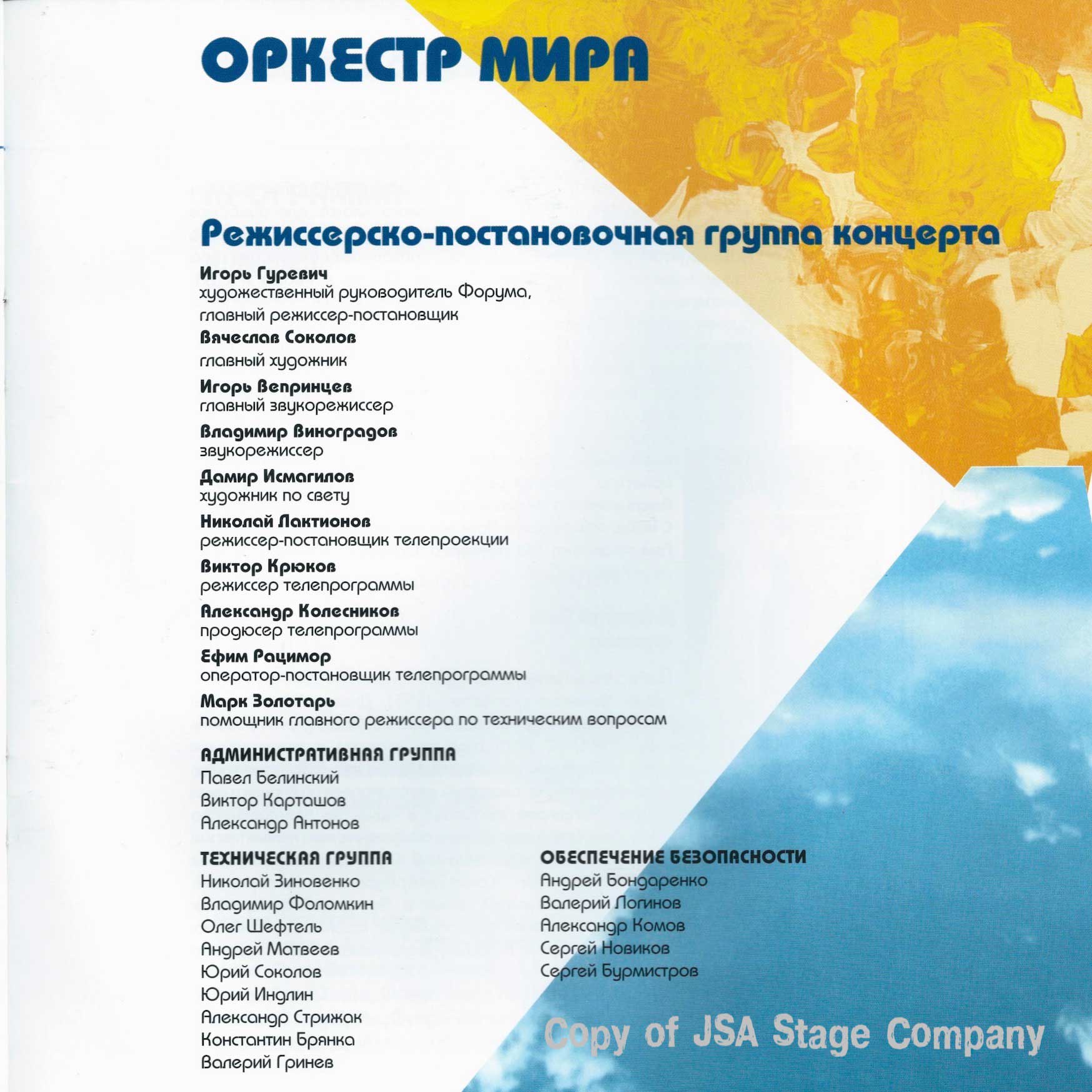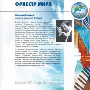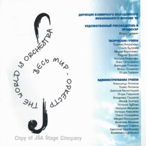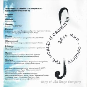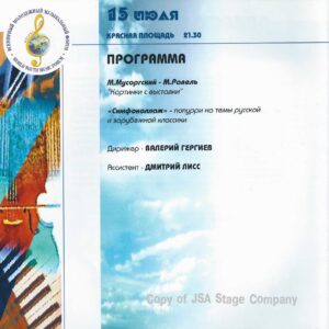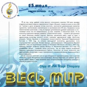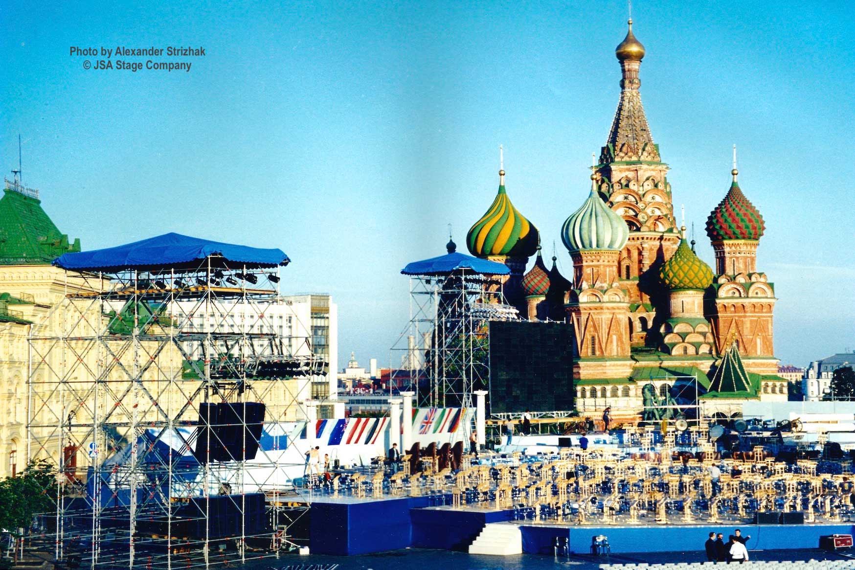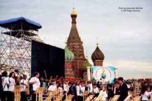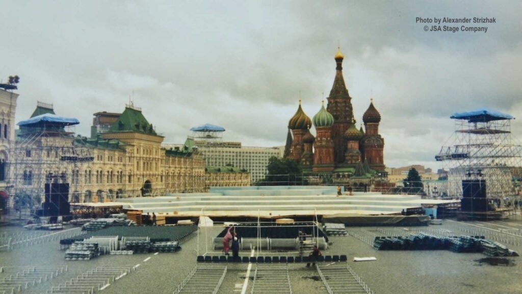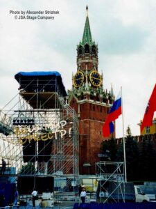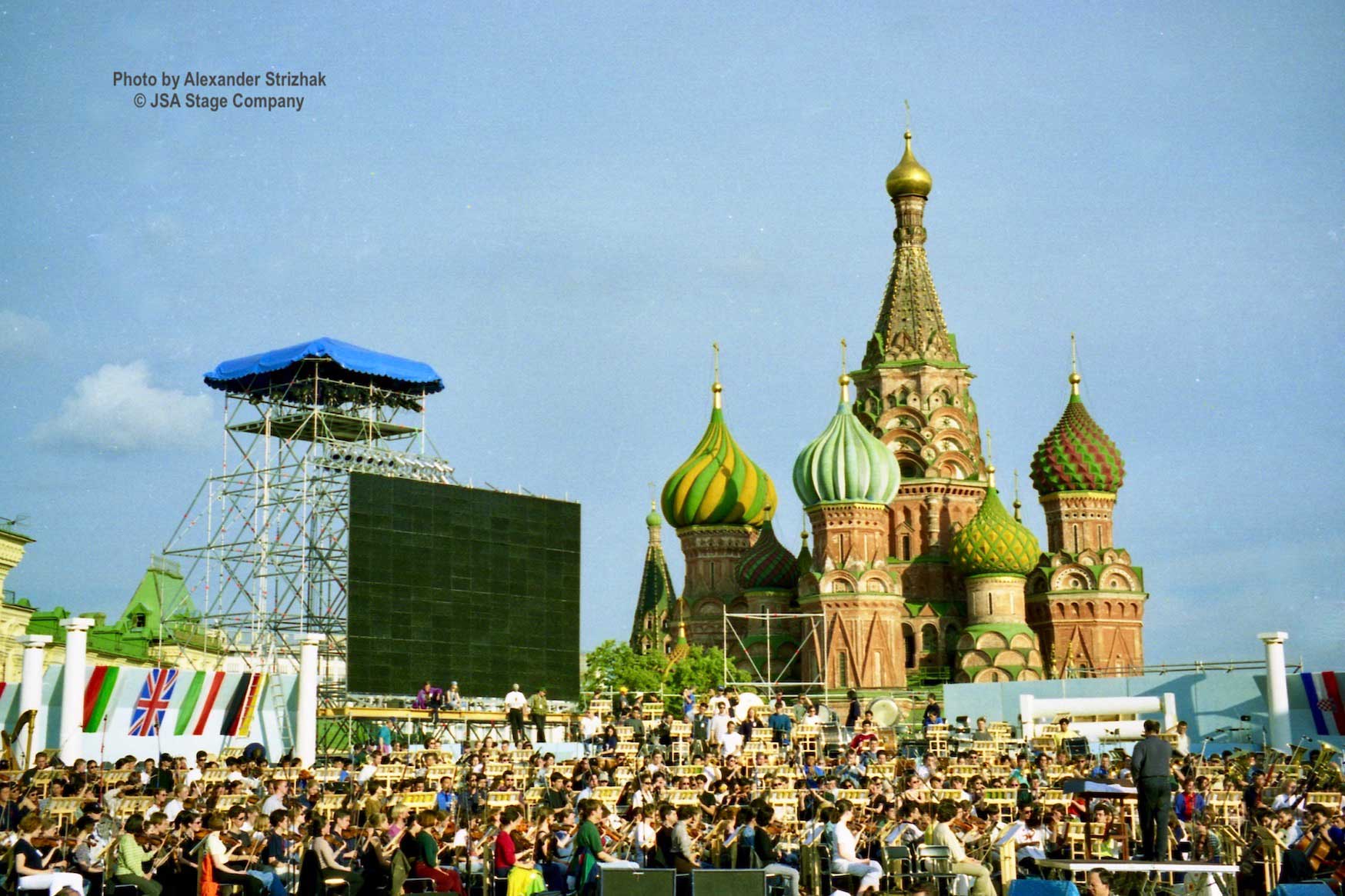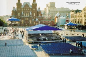 15 июля 1998 года на Красной площади в Москве состоялся уникальный концерт “Оркестра Мира”. Одновременно на сцене выступило 850 молодых музыкантов из 60 стран мира — участников Всемирного Молодежного Музыкального Форума. Дирижировал этим необычным оркестром — Валерий Гергиев. В программе концерта прозвучали произведения Мусоргского, Чайковского, Вагнера, Грига, Р. Штрауса, Бородина, Хачатуряна, Скрябина и др… Масштабное событие прошло на гигантской сцене, которую установила компания JSA, специально для этого случая.