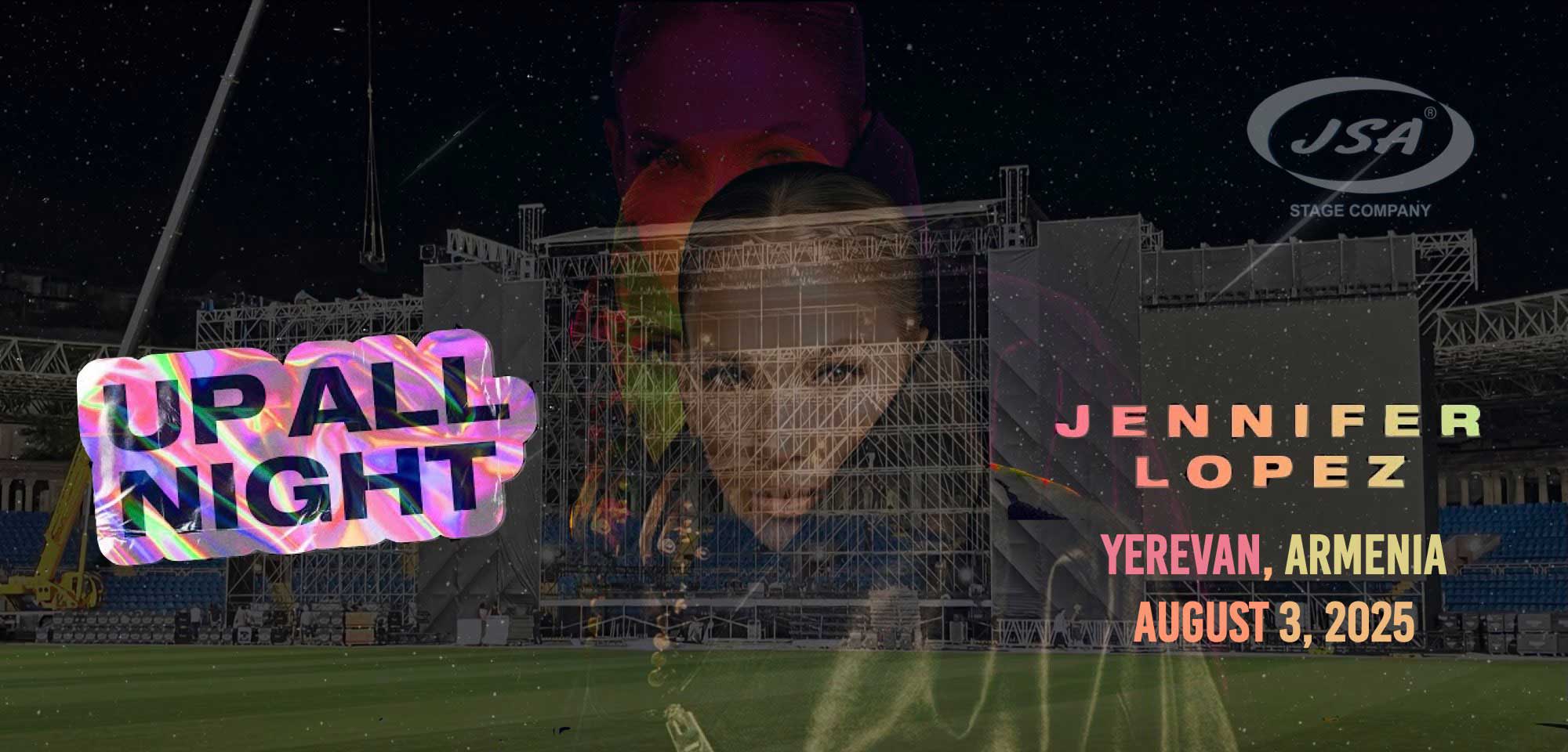 03 августа 2025 года в Ереване состоялся долгожданный концерт Дженнифер Лопес. Это был первый приезд популярной американской певицы в столицу Армении. Шоу в рамках мирового тура «Up All Night» (“Всю ночь напролёт”) прошло на Республиканском Стадионе имени Вазгена Саргсяна. Команда от компании JSA приняла участие в производственных работах и части стейджинга для этого случая.